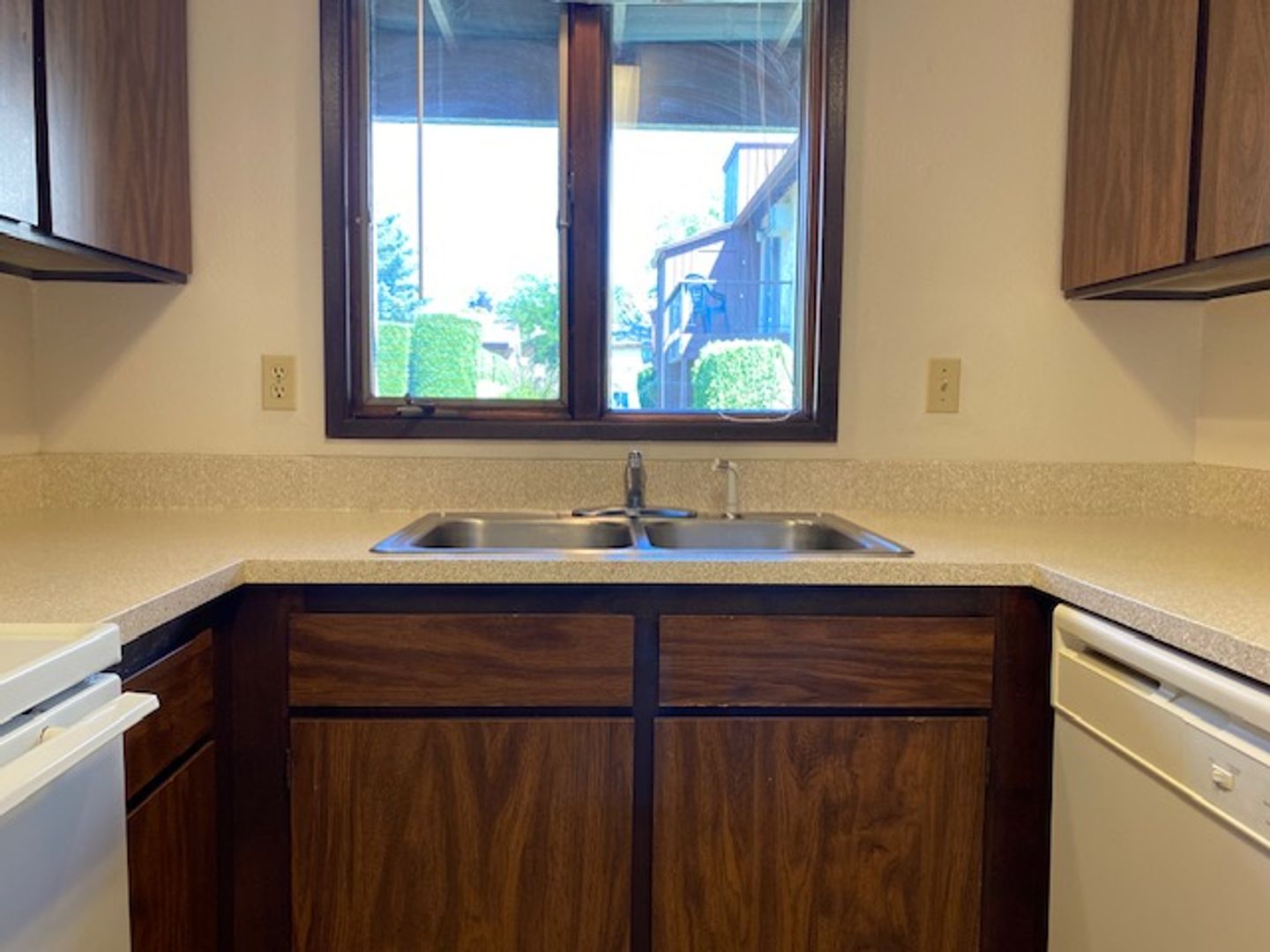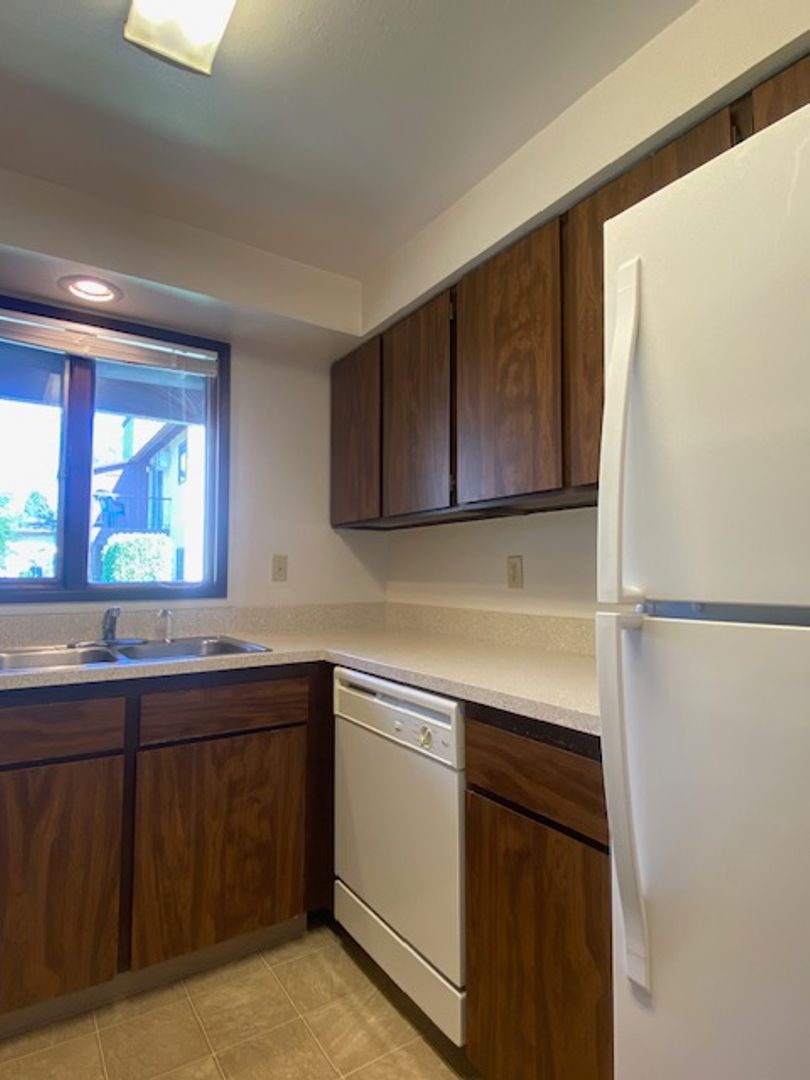 This ground floor Valley apartment has it all! Great location with your own private back porch on a greenbelt. Spacious living area with dining and a window in the kitchen. Two generous sized bedrooms with large bathroom in the middle. This little Gem can be found at Opportunity Village Apartments, a well-maintained, beautiful property with a sparkling pool, convenient on-site laundry facility and off-street parking. WON'T LAST!!